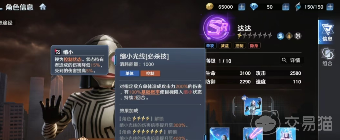 达达的核心战斗逻辑,围绕“隐匿生存”与“精准压缩打击”双重维度展开。其被动技能可在己方单位结束隐身状态后立即触发瞄准增益,显著提升缩小光线的命中率与瞬时伤害。该设计将隐身循环与爆发输出深度耦合,使其在应对高威胁单体目标时具备突出的战略价值。尤其在释放必杀技“缩小光线”时,凭借高命中率实现稳定压制,形成不可忽视的战场控制力。
