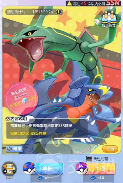 中后期阵容拓展方面,裂空座是龙系体系的关键补强。该精灵强度突出,在PVE副本攻坚与PVP竞技场中均有稳定高光表现。由于其获取难度较高,官方特别开放限时召唤活动:开服阶段参与该卡池,不仅单次抽取资源消耗更低,且内置保底机制大幅提高SSR及以上稀有度精灵的获取概率。即使未直接抽中裂空座,新手卡池亦能稳定产出SSR品质精灵,保障初始战力储备。首抽若触发幸运机制,更可直取目标精灵,显著节省后续养成资源投入。
