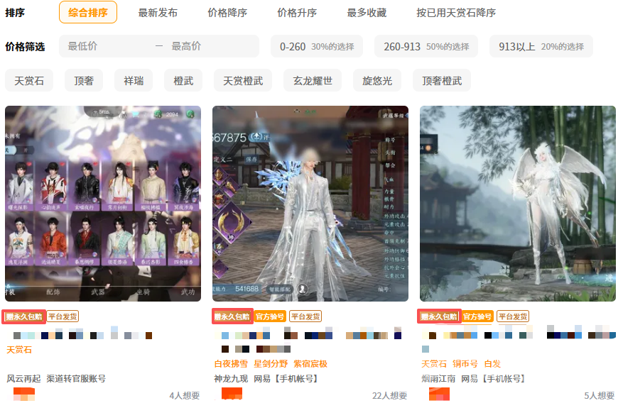 逆水寒账号交易平台的分享就是这些,如果大家不知道用哪个平台的话,不妨试试,既安全又靠谱,再加上账号资源丰富,大家可以快速找到符合自己心意的账号。