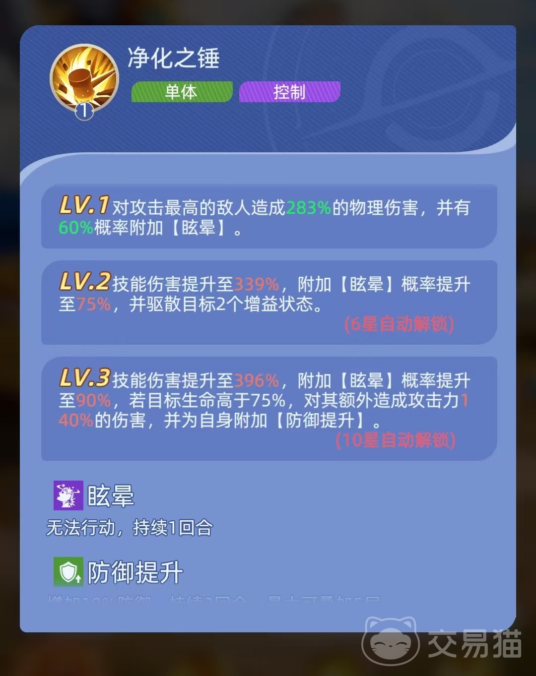 瓦尔德迪欧定位为高容错率的守护型坦克,手持巨型圣锤,具备典型的圣骑士风格视觉设计与战斗逻辑。其一技能为锁定式单体压制技:优先选取敌方攻击属性最高的单位发动打击,造成基础伤害的同时,附带概率性眩晕效果,并为自身叠加持续数回合的防御力提升状态。该机制使他在承受集火时具备显著的生存韧性,是构筑稳定前排防线的核心支点。