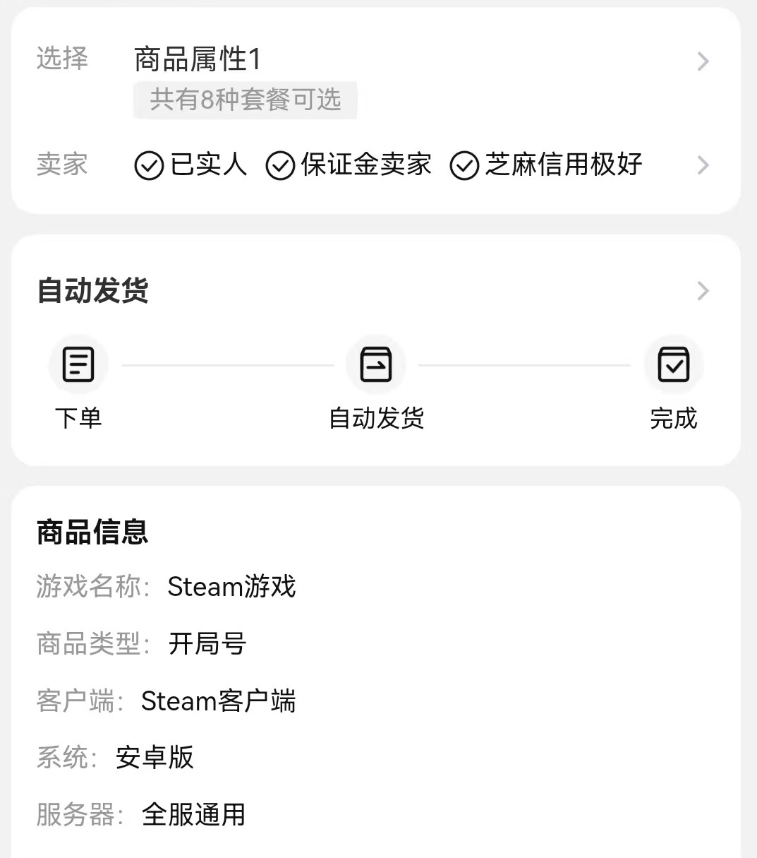 在中购买steam号,和其他游戏是同样的操作模式,输入名称搜索就可以直接找到。Steam和其他游戏不同,在这里出售的都是空白号,这一类型账号的出售商家都是平台验证过的保证金卖家,因为缴纳过保证金,所以在交易方面绝对值得信赖。下单后采用的是自动发货的模式,响应速度非常快。前往订单处点击详情就可以直接查看到账号密码了。