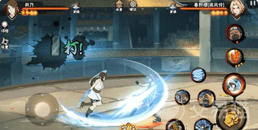 一技能“医疗水遁·水螳螂”采用短按突进机制:雨乃将手臂化为水螳螂形态,向前方直线突进并造成斩击伤害;若此前已通过二技能召唤队友,再施放一技能将激活协同变招,具体效果依队友类型及站位产生差异化响应,强调技能衔接策略性。