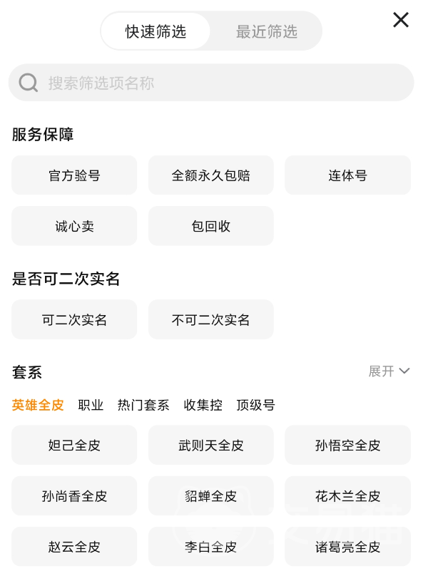 升级到贵7也就代表花了2000块购买皮肤,要是想以很高的性价比购买到贵7账号,只需要到对应的王者荣耀专区内筛选即可,平台内的筛选都是随着游戏而进行变化,他会优先去帮助你筛选出账号内最值钱的东西,或者说指定的某一款皮肤以及道具,通过一个皮肤的名字还有价格范围就可以找到号。