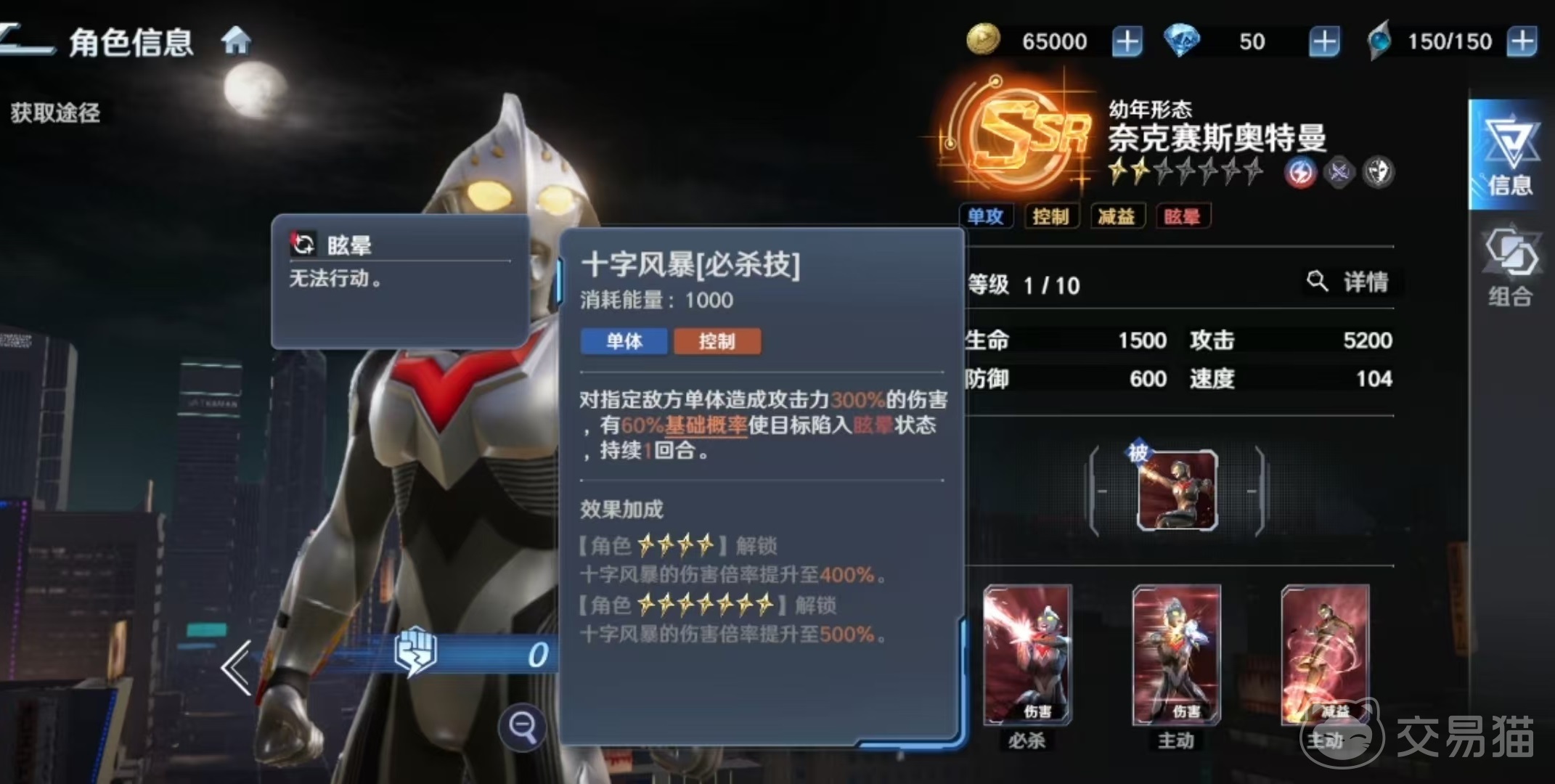 奈克赛斯奥特曼定位为单体爆发型战士,技能设计强调“命中即控”的节奏感。其被动效果明确:战斗初始阶段,自身所有技能的效果命中率提升20%。这一加成虽不直接增伤,却显著强化了后续控制链的稳定性,是支撑整套技能循环的基础阈值。在当前版本中,控制类角色普遍承担破防、减抗、衔接连招等关键职能,因此该角色在PVE高难副本与PVP针对性压制场景中均具备不可替代性。