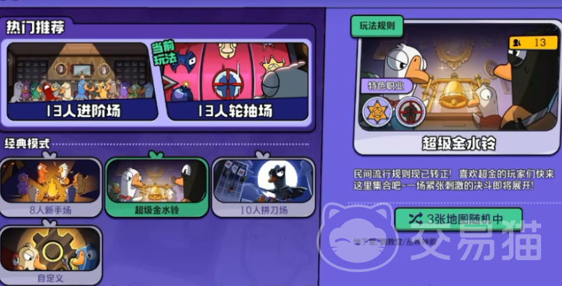 娱乐向模式进一步拓展玩法维度。超级金水铃模式沿用原有胜负判定逻辑,但赋予鹅阵营一次特殊权限——发起“超级会议”,在该会议中可指定任意一名玩家进行一对一挑战:若对方为鸭或中立阵营,则直接淘汰;若误选同为鹅阵营成员,则发起者自身立即出局。侦探猎场模式则引入技能随机机制,每位玩家在开局获得唯一被动或主动技能,且可自主决定是否承担“凶手”身份,此举大幅增加信息迷雾层级,强化心理博弈深度。
