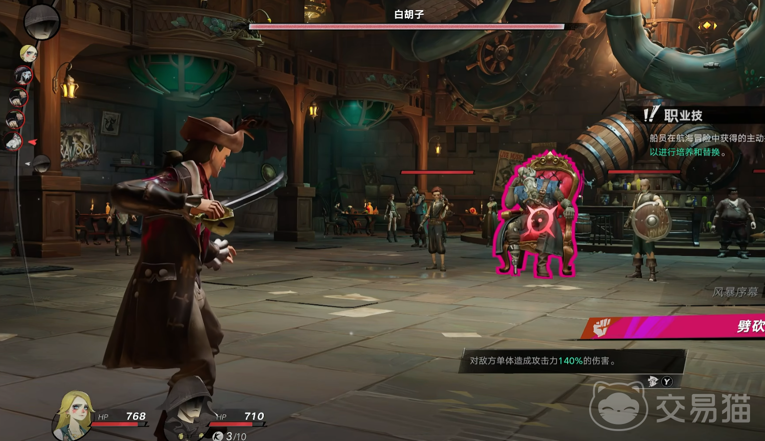 进入海平线前,需先挑战酒馆内的核心守关BOSS——白胡子。该Boss不仅封锁航道,更对主线剧情中的女主角构成直接威胁。战斗开始后,其麾下大量杂兵会持续增援。推荐采用分层清场策略:优先使用近战角色释放“劈砍”技能快速削减小怪数量,注意技能存在冷却间隔,首段输出应预留关键时机应对BOSS本体。