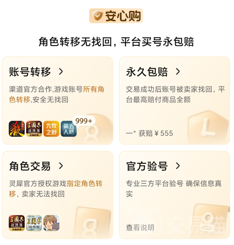 从根源上就开始严格要求每个环节,首先对卖家信息查验特别严格,强实名加不定时人脸确保账号来源为个人,其次就是团队将会对每个账号进行验号流程,出具最为准确的验号报告,也相当于是每个账号独特的身份标签,在独特的”安心购“流程当中,每个步骤都是和安全环环相扣。