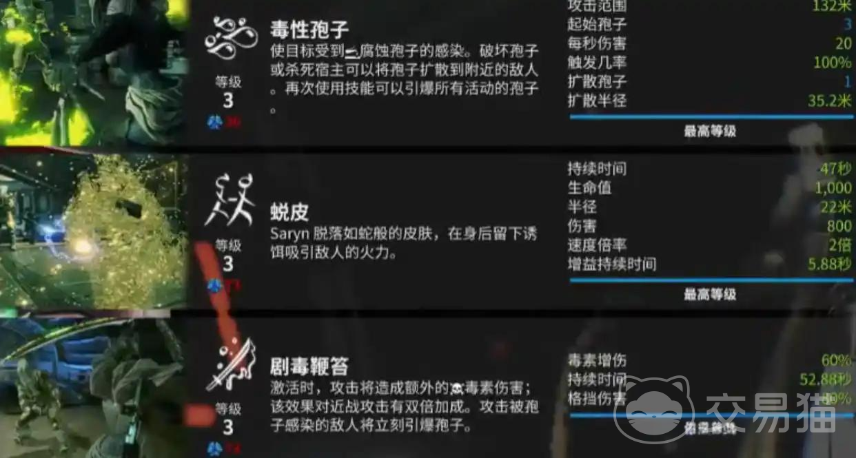 武器搭配方面,主武器首选「天穹之顶」——其半自动模式下的无限穿透特性,可确保孢子类技能完全无视敌方护甲与障碍物,实现跨地形精准布控;副武器建议选用具备毒属性触发效果的型号,例如「毒芽」或「脓痘」,二者均能通过高频毒伤快速叠加异常状态,加速孢子感染进程并提升引爆频率。