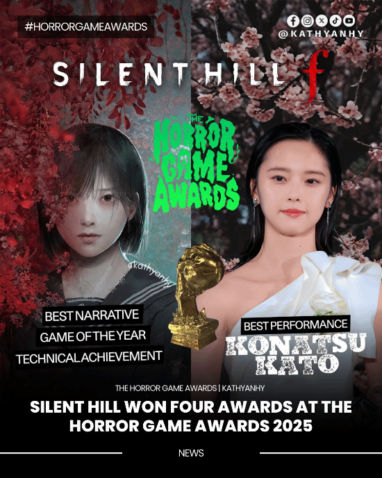 与上周TGA的颗粒无收不同,Konami的《寂静岭 f》在这里展现了统治力。它从6项提名中卷走了 4项大奖,包括分量最重的年度最佳恐怖游戏、最佳叙事以及最佳技术成就。此外,游戏女主“雏子”的脸模加藤小夏,也拿下了本届最佳表演奖。