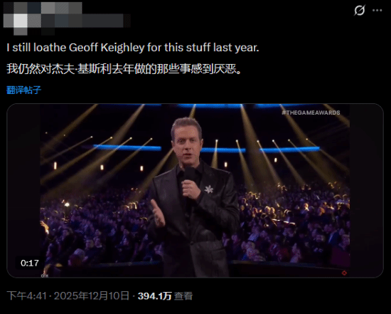 在TGA正式开始之前,有一位网友表示,“我仍然对Geoff Keighley去年的所作所为感到厌恶。”同时分享了2024年TGA的一个视频片段,内容是TGA主办人Geoff Keighley在为《大神》续作PV预热时的发表一小段介绍,Geoff当时表示:“如果你和我一样真心热爱游戏,那么这一刻就是为你准备的。”然后就是《大神》续作的官宣。