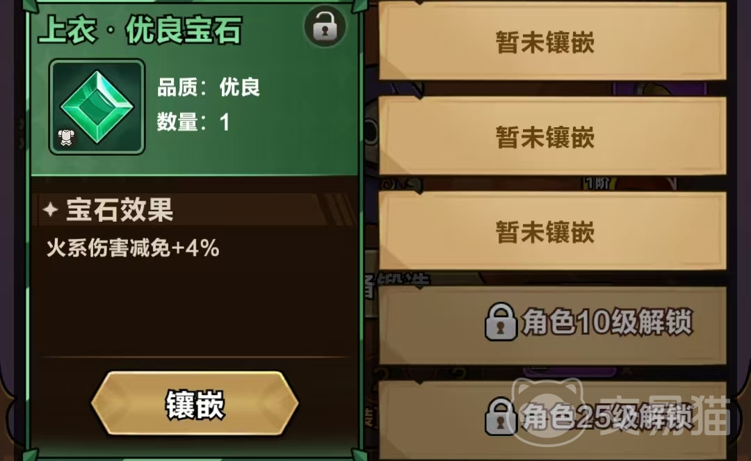 单装备部位最多镶嵌5颗不同词条宝石。前期专注输出类宝石即可。低品级宝石可通过合成提升品质,洗炼需消耗【宝石洗炼道具】,每5个道具可兑换1枚【上位石】。
