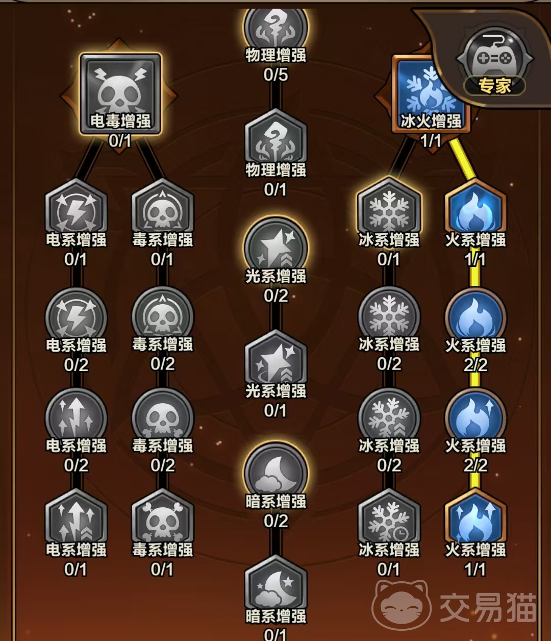 根据主力技能所属元素,优先点亮对应元素增强分支,形成属性加成闭环。