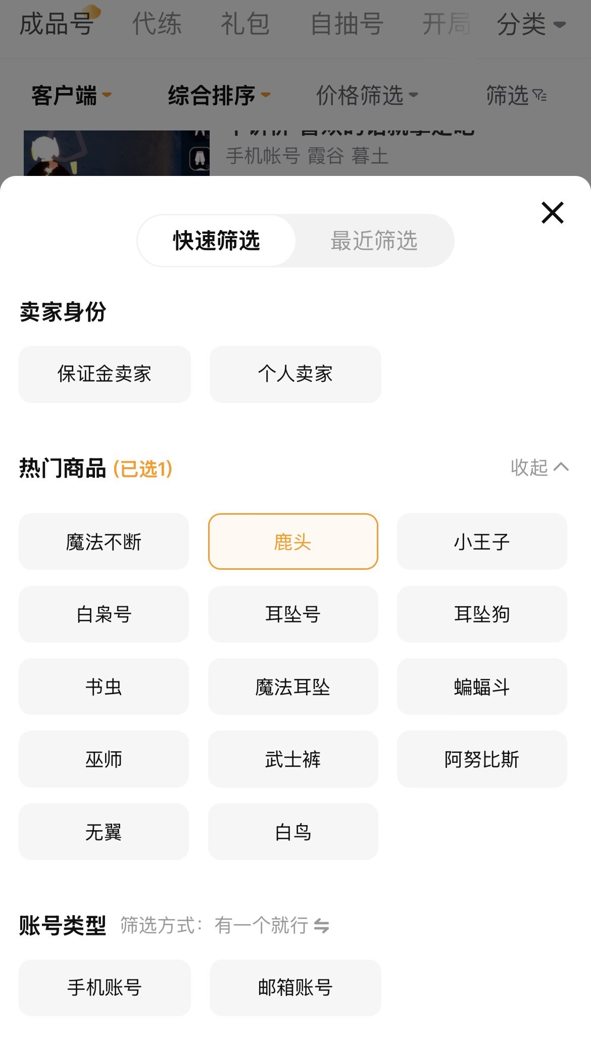 在每个商品的界面都配有详细的截图,从发型,斗篷,乐器等关键的道具展示,而根据市场现状来看,单独的鹿头面具的基础账号估值普遍在千元以上,但是如果拥有的限定皮肤和其他的稀有装备的话,那么整体的价值将会成倍的增长,所以大家可以根据自己所需要以及自身能力来筛选定位。
