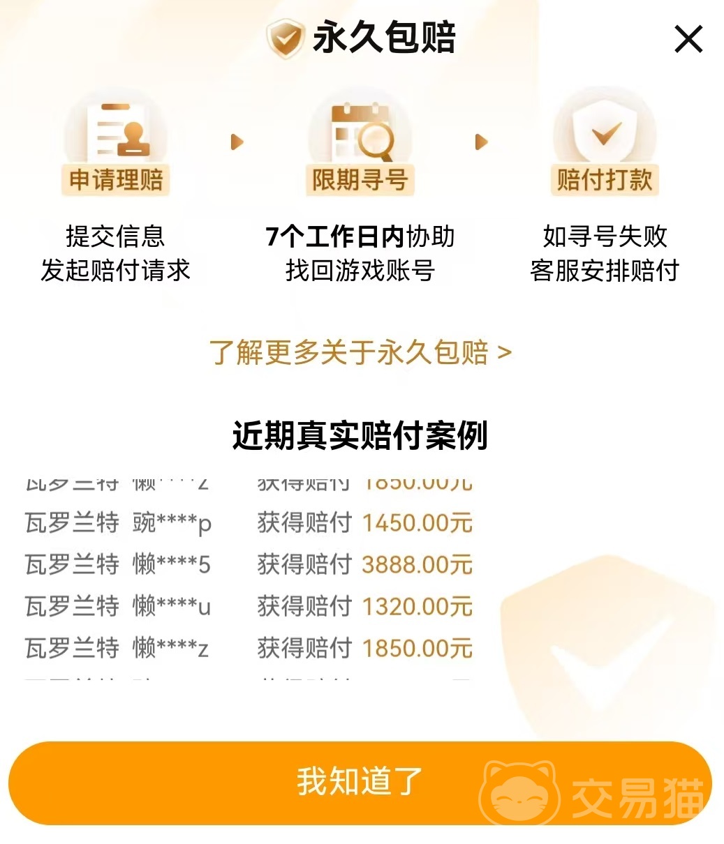 对所有用户都进行了非常严格的认证,尤其是卖家更是需要进行实人制认证,绑定自己的芝麻信用等一系列操作,这样可以将每个商家的信用情况都直接展现给所有人。买家可以选择和信用良好的商家进行交易,这样可以减少很多麻烦,也净化了整个交易环境。第二项优势在于所有在这里出售的成品号都获得了永久包赔的赠送服务。如果账号被找回,会由平台按照额度来进行赔付。所以即使在这里交易的是很多外服的账号,也不用担心安全性问题。只要带有全额赔付标签,就是真正值得信赖的。部分赔付也可以自己升级成全额赔付。