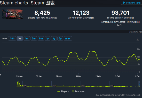 从 SteamDB 的数据能看到,新作公布后,《神界:原罪2》的最高同时在线玩家出现在1月4日,有27409人。之后,在线人数稍微少了一点,但一直稳定在1万人以上。