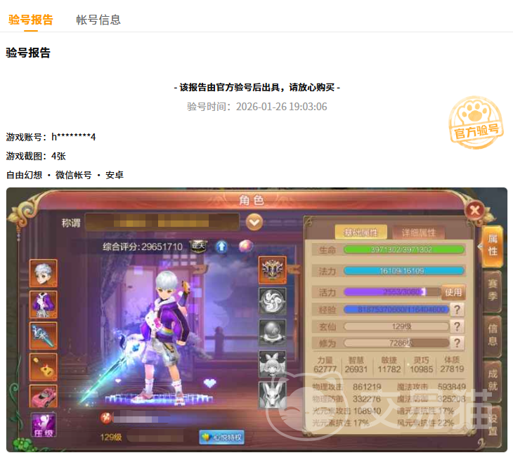 值得一提的是,平台有购验号服务,小伙伴们的账号不需要自己辛苦贴资源,可以直接让平台进行验号,展示具体的号内资源情况。