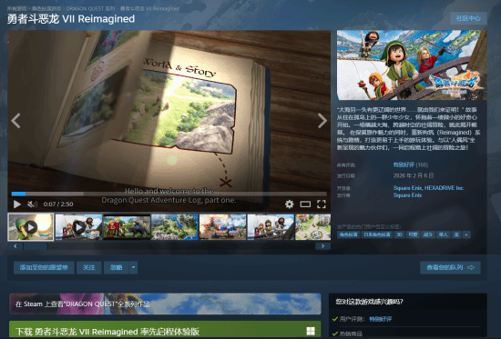 近日,Square Enix联合HEXADRIVE打造的经典RPG重制版《勇者斗恶龙7 Reimagined》正式登陆多平台,Steam版同步发售,Nintendo Switch、Switch 2、PS5、Xbox Series X|S及PC微软商店版本已于2月5日全球上线,为新老玩家带来兼具怀旧质感与现代体验的冒险旅程。官方还发布了专门的中文字幕版本的发售宣传片。