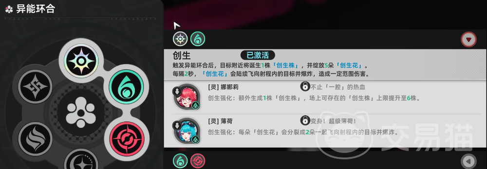 当前开放的环合天赋包括创生、覆纹、浊燃、失谐、黯星、浸染六大方向,各自适配差异化阵容结构。例如【创生】天赋需依托光属性主C娜娜莉与灵属性副C薄荷构成双核驱动,方能稳定生成【创生株】并使其成长为【创生花】,进而提升全队环合技能的伤害倍率与附加效果覆盖率。