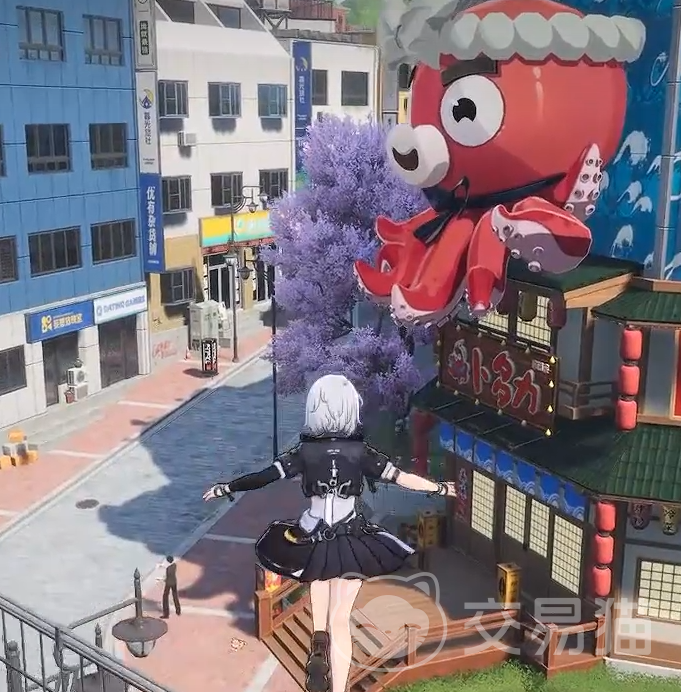 采集完毕后折返向左,于电箱旁小巷进入,直行至尽头右转进入广场,此处存在“异象委托”任务,需主动选择“公平决战”选项接取。战斗结束后,从广场左侧道路前进,目标锁定远处标志性章鱼头造型建筑;抵达其入口广告牌处,可拾取第三枚“乌鸦玉石”。