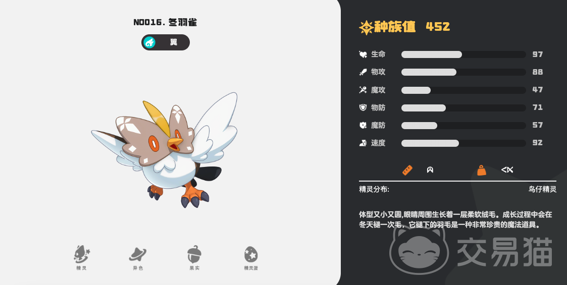 从属性分布来看,冬羽雀在生命值、物攻与速度三项关键维度上均具备显著优势。该配置使其天然适配快攻压制流派——既能抢占出手顺序,又能以高频率物理输出压制对手。在队伍构建中,通过技能组合优化,它可灵活承担首发干扰、节奏控制或中段补刀等多重职能,实用性覆盖多数常规对战场景。