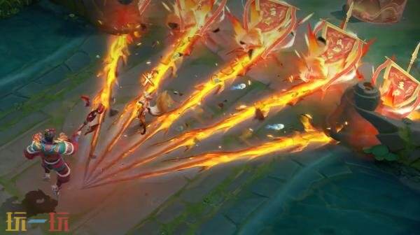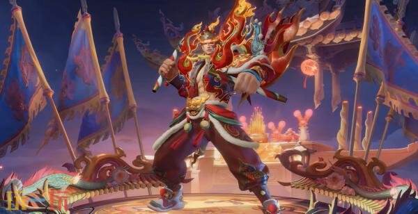 三技能:重击撼地,掀起五道向前蔓延的火焰浪潮,浪潮之上镌刻节庆祝福的英歌旌旗升起。“以英歌一舞,望国泰民安、福寿安康、风调雨顺、五谷丰登”。