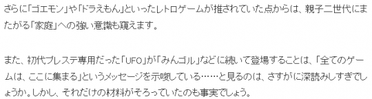 ·最后包括PS一代主机的专用游戏《UFO》、《大众高尔夫》等也将移植,任天堂或许在传达“所有游戏我都要”的野心。