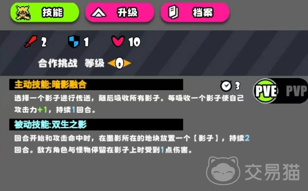 墨影的核心能力围绕“影子”构建,其被动效果可自主生成影子资源:在PVE或PVP任意模式中,每当回合开始或普通攻击命中敌方单位时,墨影当前所处格子将自动留下一枚影子。该影子持续存在2回合,效果等效于一个基础陷阱——任何敌方单位停留于该格时,立即承受1点固定伤害。值得注意的是,各影子独立计时,新影子部署不会清除旧影子,因此可实现多点布控、持续压制。