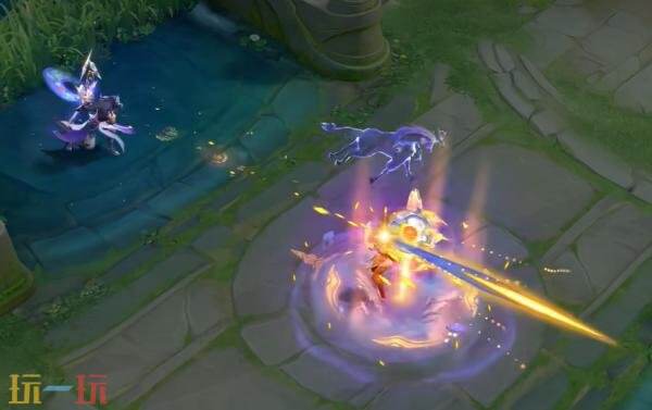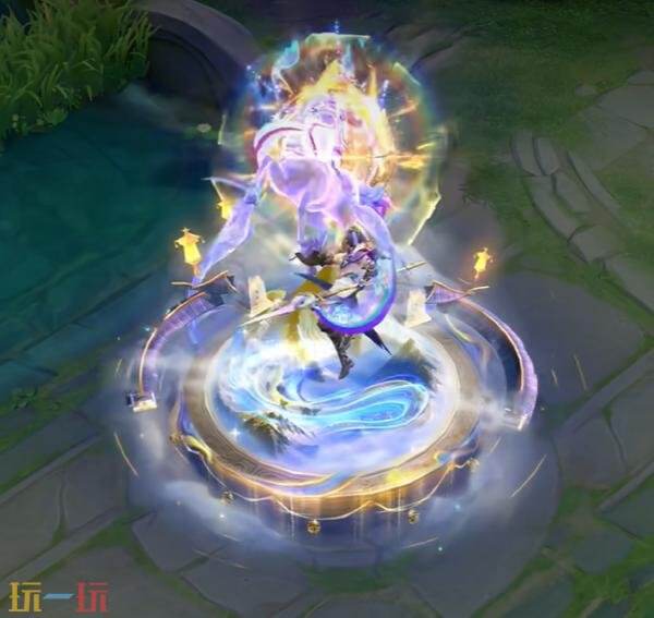 * 二技能:银枪汇光芒而出,穿云破瘴。在神骥环绕中,化作山岭上的神轮。