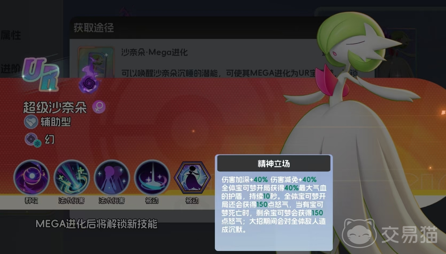 《宠物集结》正式上线MEGA进化系统,玩家可通过获取对应MEGA进化卡,将符合条件的宝可梦进行形态跃升。超级沙奈朵作为拉鲁拉丝的MEGA进化形态,需在角色达到指定练度后激活,是当前版本中兼具战术控制、团队增益与生存保护能力的核心辅助型宝可梦。
