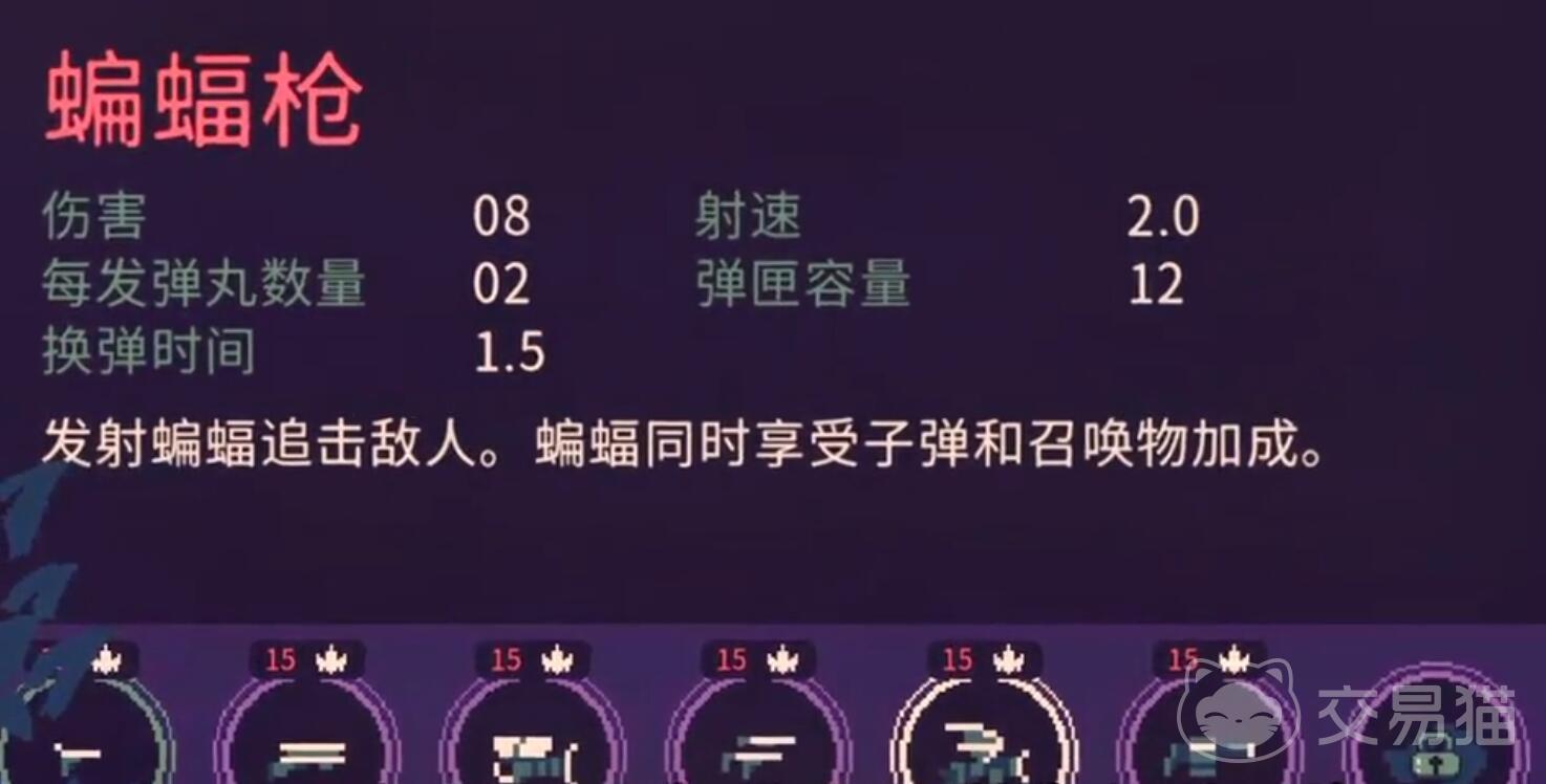 除被动外,哈斯塔拥有专属武器“蝙蝠枪”。该武器基础攻击力为2.0,单次射击发射12枚弹丸,所有蝙蝠均具备自动追踪目标能力,命中率极高,几乎无空弹现象。关键特性在于:蝙蝠同时计入子弹类与召唤物类增益体系,可叠加攻击速度、暴击率、元素加成等多重属性,显著放大整体输出效率,是构建哈斯塔强度闭环的关键组件。