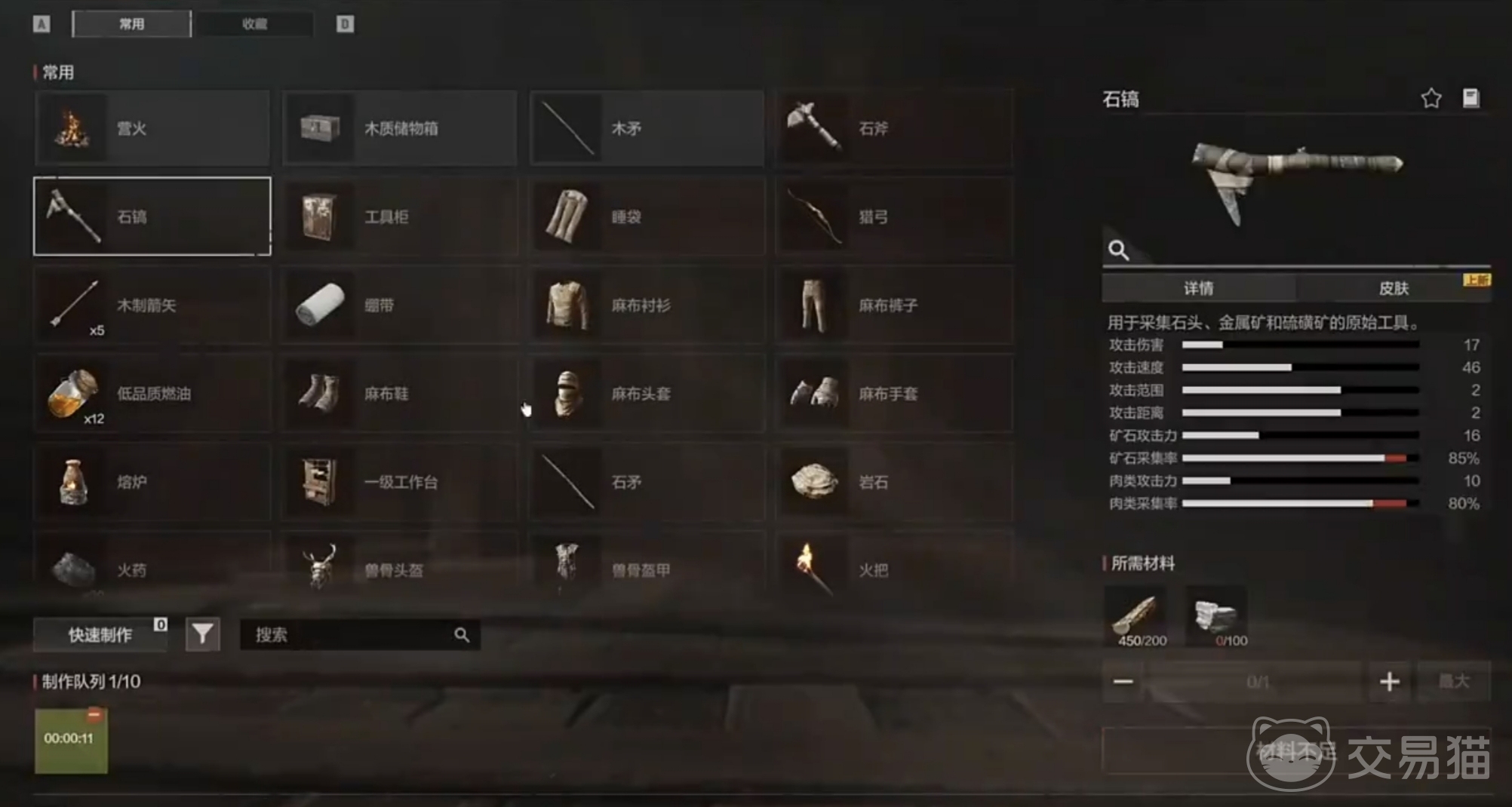 游戏初期,玩家需优先获取基础材料——木材与石料,用于搭建初始庇护所,以应对昼夜温差、极端天气及敌对单位的潜在威胁。交互机制中,点击树木上的高亮标识可显著提升伐木效率;随后应快速合成斧头、镐子与木矛,分别对应采集加速、矿物挖掘与近战防御三大核心功能。首夜前务必完成睡袋制作,该道具支持原地重生,有效避免资源损失与进度回退。