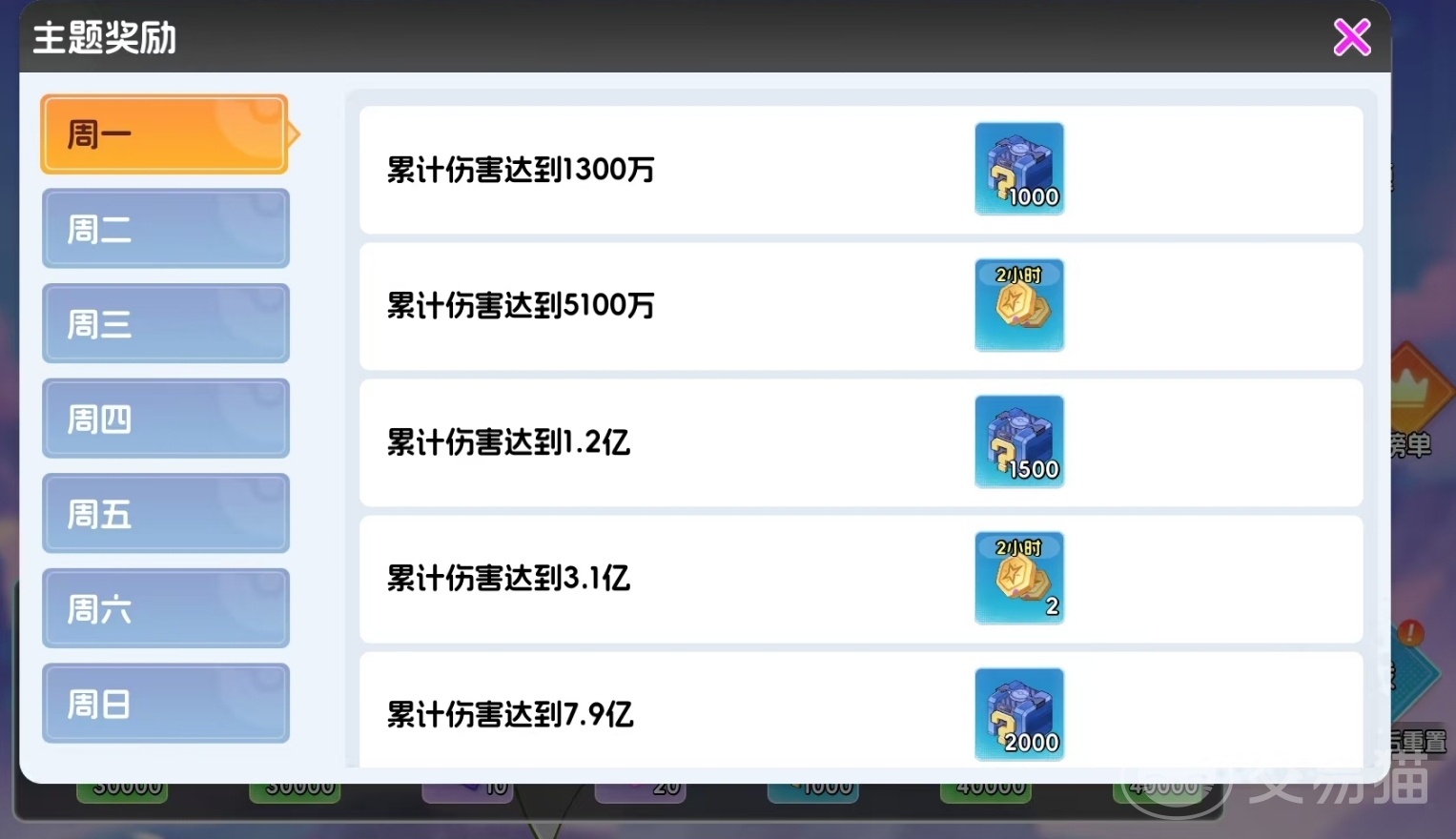 每日挑战需满足两个前置条件:首先通关主线关卡5-32;其次在主城岛屿中完成“冒险奇谭”(即飞艇)建筑的建造。完成后,玩家即可通过飞艇入口进入该玩法。挑战周期为每日0:00至23:30,结束后自动进入结算,并发放对应档位奖励。伤害达标线为200万起,最高可累计至5000兆,但该上限极难达成。玩法共设7个主题轮换池,每个主题对应唯一BOSS及专属奖励池,主题按固定顺序每日更替,确保内容持续更新。