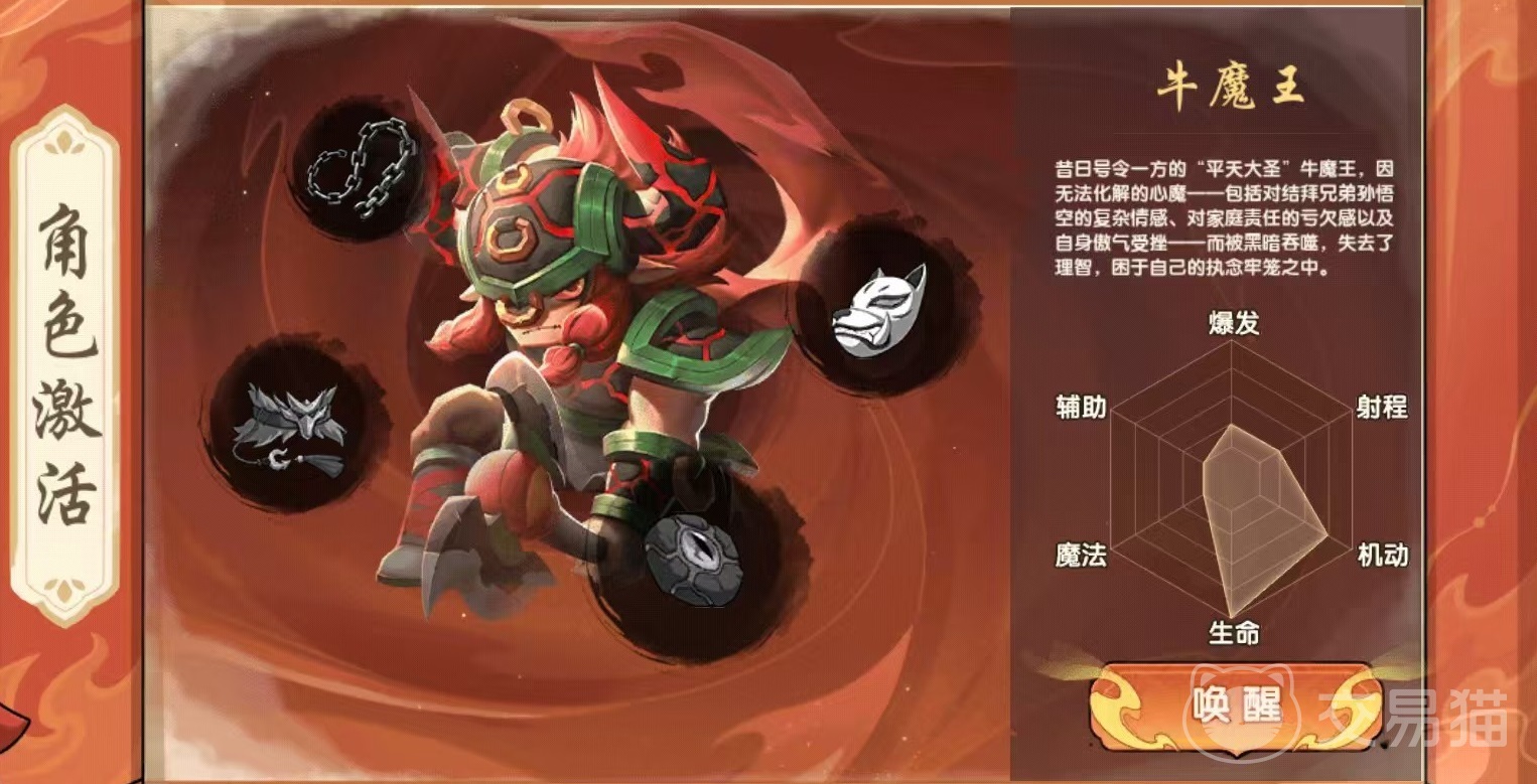 牛魔王承担前排坦克职责,以高容错率、稳定控制链与极致抗压能力见长。核心技能含魔化(大幅提升防御与减伤)、摄魂魔爪(强控 吸血)、螺旋横扫(大范围击退)及蛮牛冲撞(直线突进并眩晕)。被动技能“疯狂蛮力”可显著提升物理强度与承伤转化效率。该角色适用于习惯正面接敌、主导团战节奏、专注保护队友或持续施压的玩家群体。