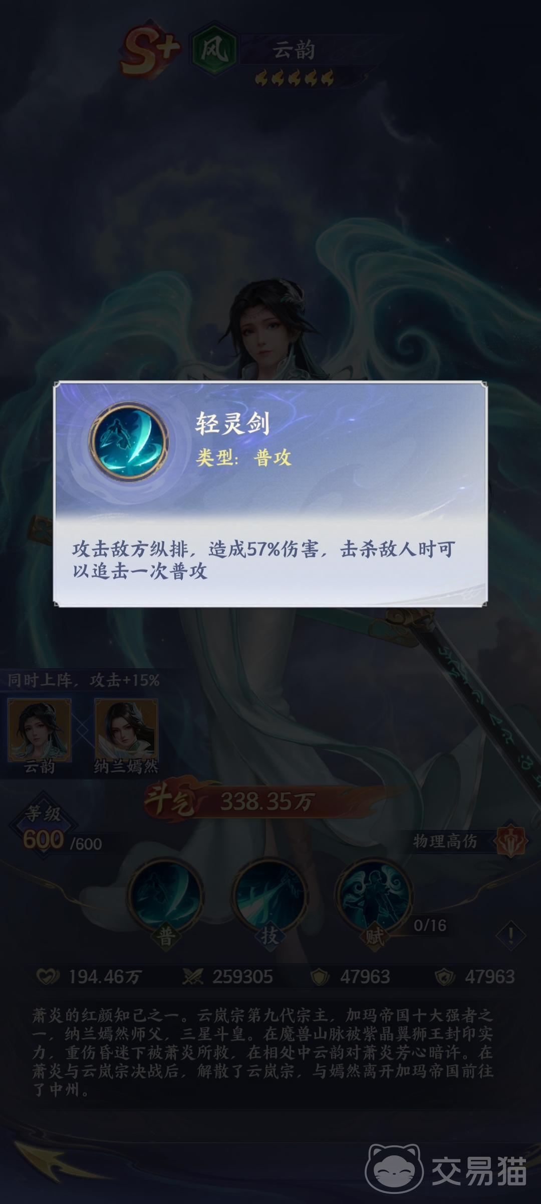 四、羁绊协同:与纳兰嫣然共同登场时,激活【师徒同心】羁绊效果,额外提升云韵15%暴击率及8%技能伤害。该组合在PVE副本攻坚与PVP阵容克制场景中表现尤为突出,建议根据敌方阵型灵活调整上阵位置以最大化羁绊收益。