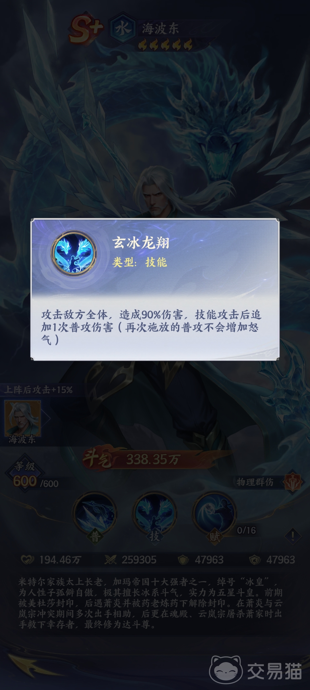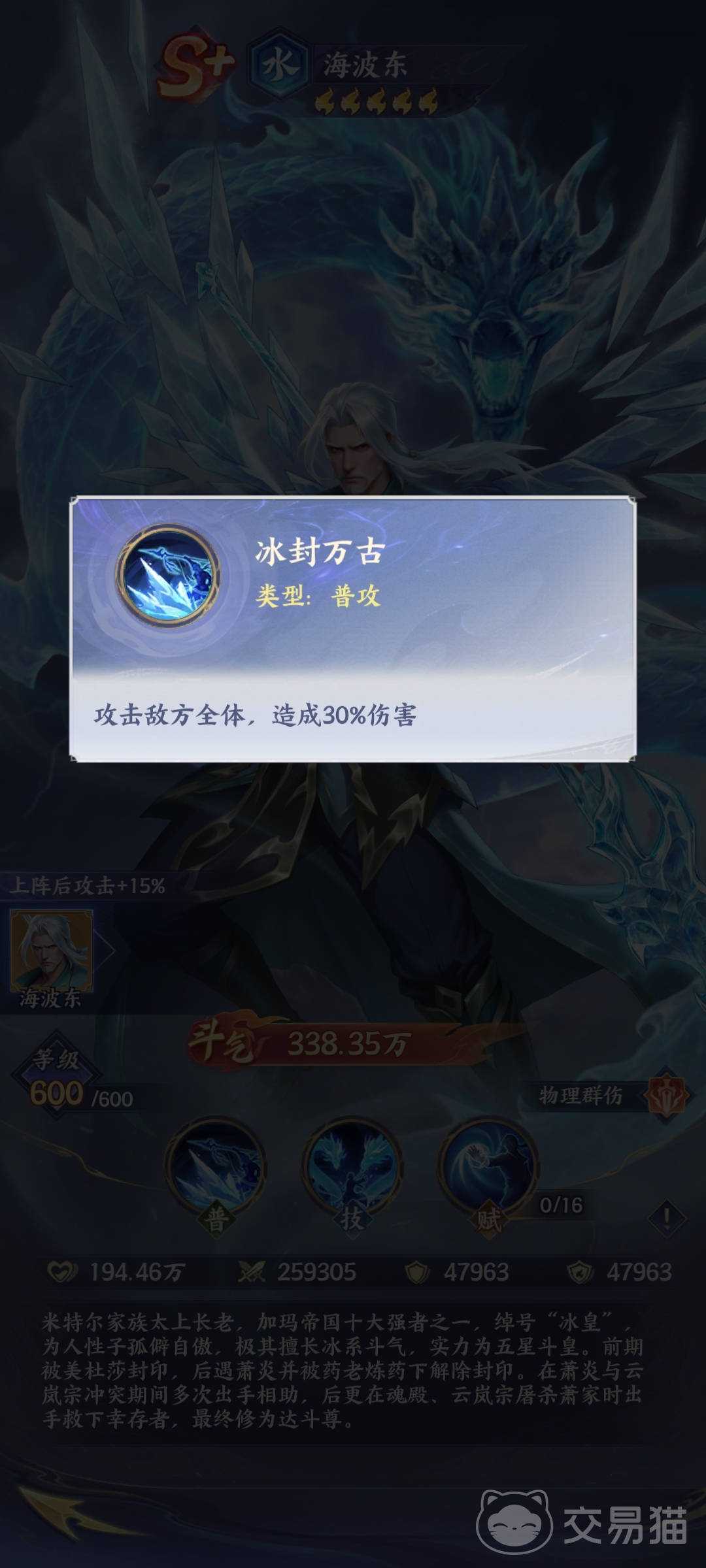 在《斗破苍穹》手游的斗气体系中,海波东凭借其独特的冰属性战力与战术定位,持续受到玩家群体的高度关注。作为米特尔家族资深长老,他不仅承载着原著“冰皇”的威名,在游戏机制中更被设定为S 级水属性、物理纯伤型斗者,是PVE副本与多目标战斗场景中的关键输出角色。
