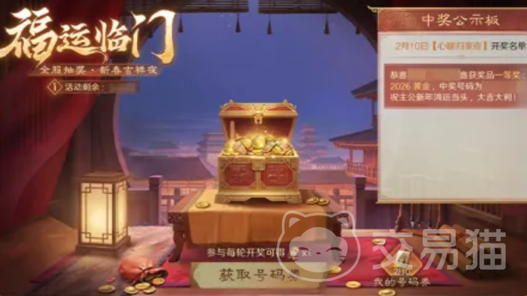 2月10日至3月3日,“百戏游园”与“元夕灯谜”两大玩法开放,玩家通过参与可获取抽奖卷。持有任意数量抽奖卷即视为已加入“福运临门”玩法。中奖号码将于2月17日、2月21日、2月24日及3月3日分批公布,单次最高奖励达2026黄金。
