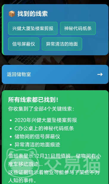 玩家将扮演一家大型科技集团的新入职员工,在李总离奇失踪后被警方列为重要调查对象。为摆脱嫌疑、还原真相,必须在布满智能终端与监控系统的现代化写字楼内展开自主探索——从故障电梯间到数据机房,从门禁日志到员工工牌,每一处细节都可能成为破局关键。
