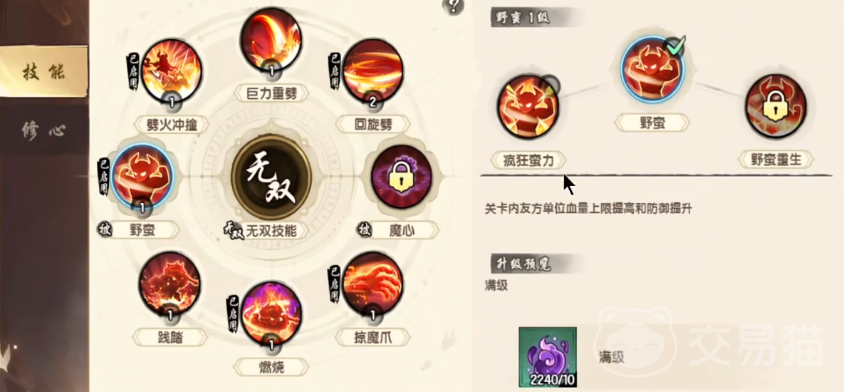 牛魔王的战斗逻辑以“突进—叠加—持续压制”为核心,技能组合强调短距离高速冲撞衔接连续近战打击,形成高频率输出节奏。前期建议优先升级【烈焰崩山】与【狂牛踏地】等主力攻击技,确保主线推进效率;中后期面对多波次精英怪与Boss战时,则需均衡提升【铁壁横扫】【怒焰回旋】等控制与续航技能。在“修心”系统中,应重点投入资源强化【攻击强度】与【生命恢复】两项属性——前者直接提升单次冲撞伤害与连招爆发力,后者显著延长持续作战时间,缓解近身缠斗中的生存压力。