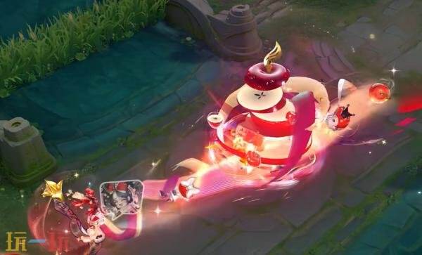 一技能:喜欢苹果制造的惊喜吗?安琪拉抛出的苹果瓣在空中飞舞。当果片汇聚,合拢成完整的闪光苹果。若又在中途分散,果片们将幻化为苹果小矮人落地逃走。