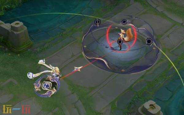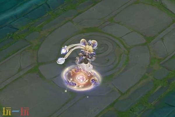 三技能:元芳用力掷出星盘,落地瞬间便在地面撑开一片深邃虚空。星盘在中心急旋,灵犬戏于盘面,顶托星辰漫步。随着灵犬嬉闹,星宿波动如潮汐扩散,将四方邪祟悉数镇压。