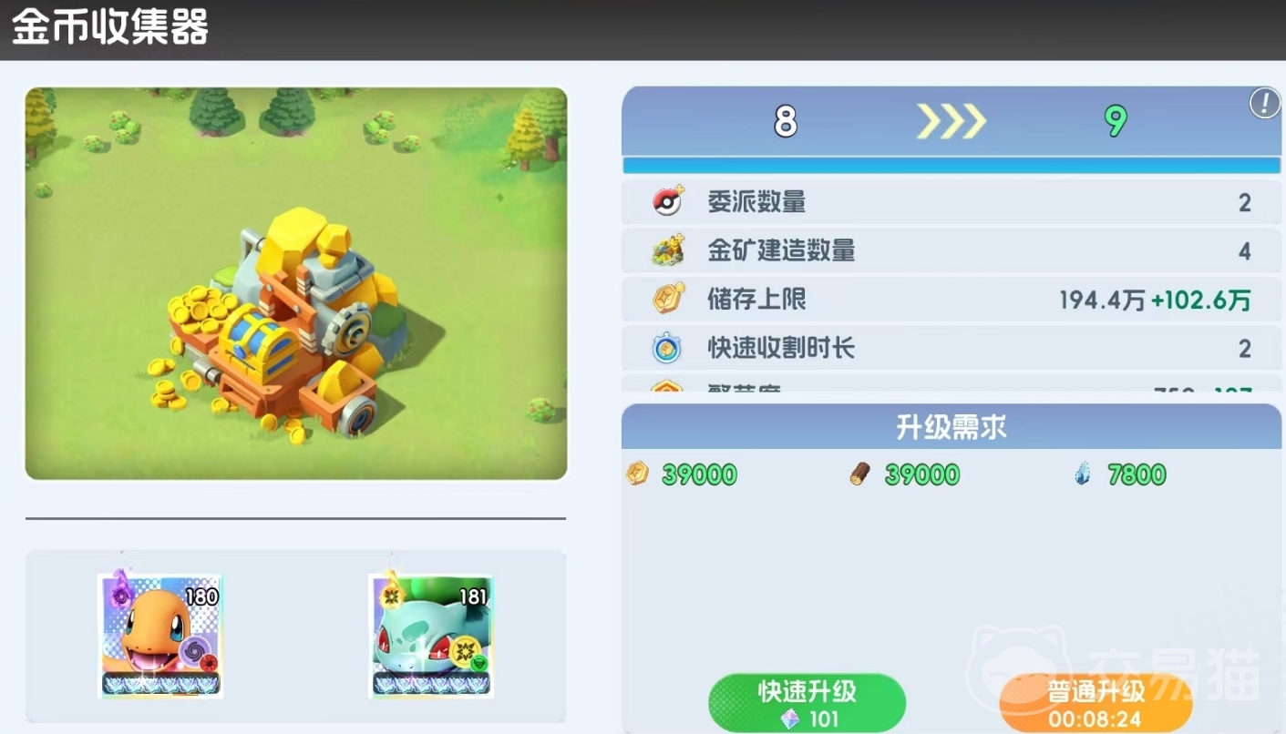 该建筑支持宝可梦驻守机制,入驻的宝可梦将根据其星级提供额外金币产量加成。该加成同时作用于金矿常规产出及快速收割所得金币,实现双重收益增益。随着金币收集器等级提升,可开放更多驻守栏位:10级时解锁第二栏位,最高支持三只宝可梦协同驻守,进一步叠加增益效果。