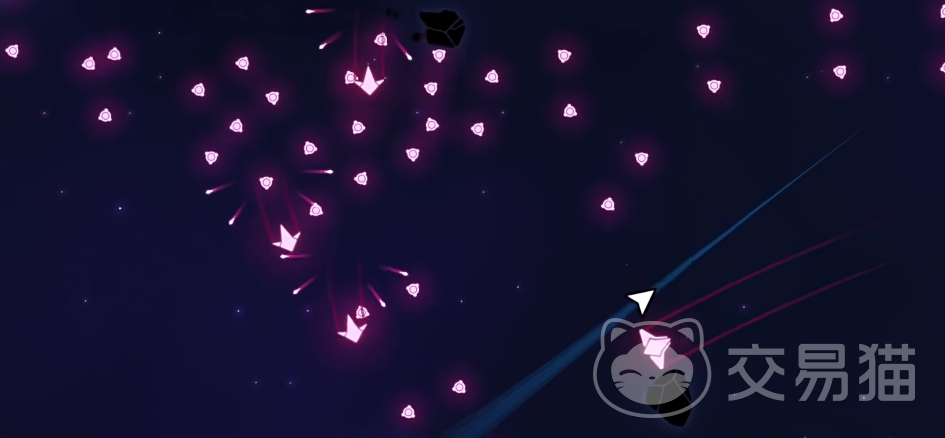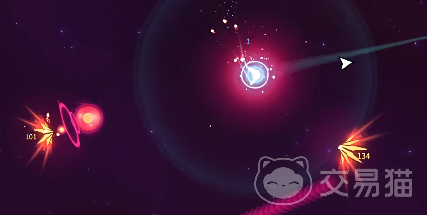美术层面采用极简宇宙美学,以高饱和度色彩构建空间层次:玩家操控的飞船表现为动态光晕主体,敌方单位则统一设计为几何化圆形结构(如陨石状实体),强调视觉识别效率。虽造型高度抽象,但蓝紫橙青等主色调的节奏性切换与粒子特效叠加,共同营造出沉浸式星际作战氛围。