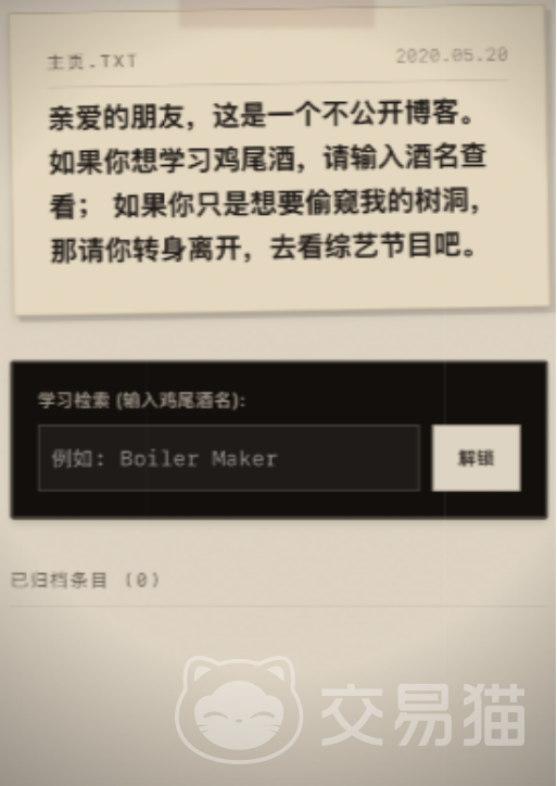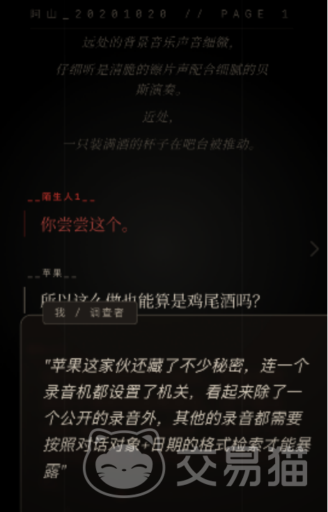 《昨日酒客》是一款由嬉皮狗工作室自主研发的文字解谜类手游,安装包体积精简,对硬件配置要求较低,主流安卓设备均可流畅安装并稳定运行。游戏以沉浸式单线叙事为核心,构建出极具辨识度的复古悬疑体验——黑白影像质感、胶片颗粒特效、8毫米胶卷与鸡尾酒学习日志等标志性道具交织成线索网络,在封闭酒吧场景中层层推进,引导玩家还原离奇失踪事件的真相。