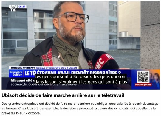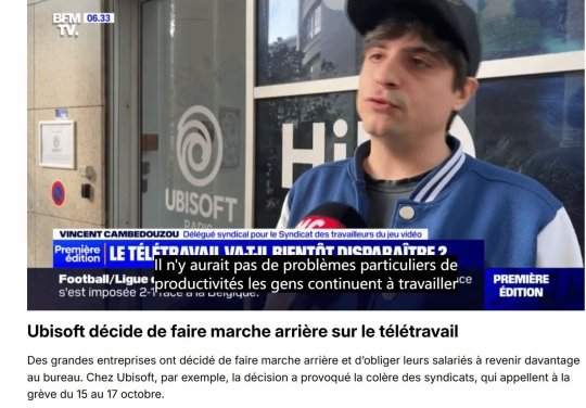 育碧正遭遇员工无限期罢工,起因是员工抗议公司取消居家办公政策。部分员工接受了法国知名电视台BFM的采访。