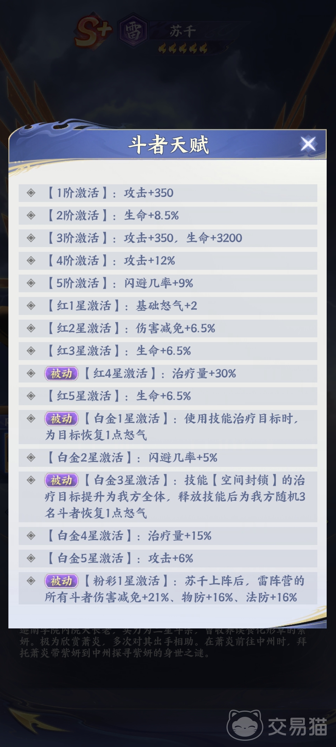 天赋系统是驱动苏千成长的关键模块。基础阶段侧重提升其自身生存阈值与基础输出稳定性;突破至红阶后,技能冷却缩减明显,释放频率提高,同时防御属性进一步增强;进入白金进阶阶段后,“空间封锁”正式解锁全体治疗 群体回怒双重效果,使苏千从单点守护者跃升为全局节奏掌控者。