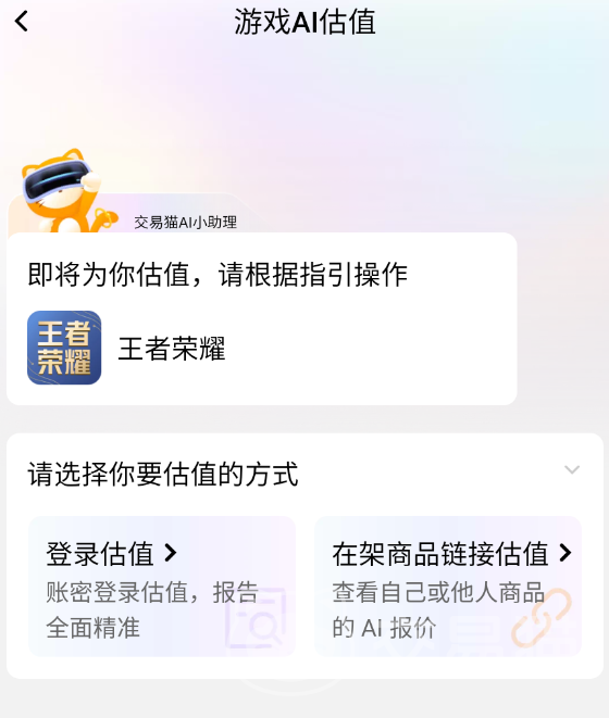 想在上评估游戏号的价值,操作起来也非常的简单便捷。首先点击界面并找到免费估值的功能入口,进入对应的估值页面后,按照系统的提示,准确写游戏名,区服账号配置等相关信息。确保内容无误后,再点击一键估价功能,就能快速的完成号的估值评价,获取大数据号价评估,让你对于号价有更清晰的了解。