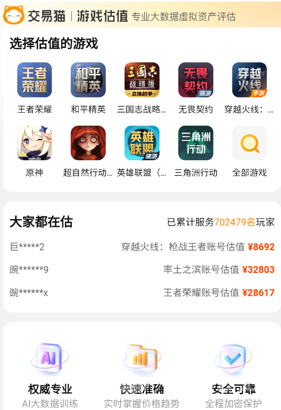 在账号出售的整个流程里面,很多卖家都最关注挂售的账号价格,但是不少人对自己号值缺乏清晰的概念,尤其是玩法复杂、养成体系较深的游戏账号,更加难以判断。那么账号估值去哪个平台?接下来小编给大家推荐,它既能精准完成估值,又能便捷上架出售的平台,实现从号的估值到挂售变现的一站式安心服务,千人服务团队平均半小时完成发货,48H完成售后,响应速度很快,已经成为行业排行第一的交易app。