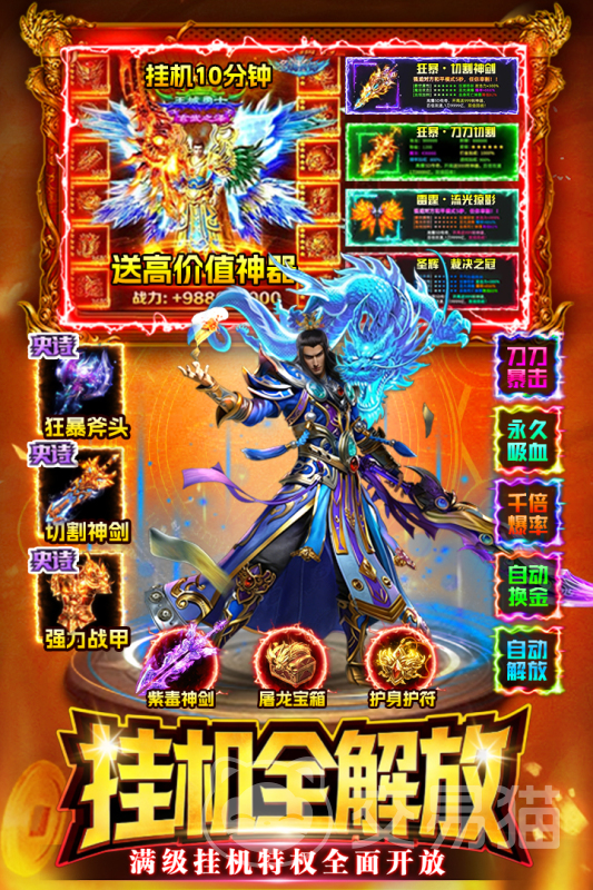 游戏内置智能辅助系统,涵盖自动拾取、自动回收、巡航锁怪等功能,大幅降低操作门槛。即使离线状态下,角色仍可持续刷怪、收集装备、灵符及各类养成材料。挂机所得元宝与资源可直接用于强化、进阶与技能升级,助力战力全天候稳步攀升。满级VIP权益亦可通过长期活跃积累解锁,无需额外付费。