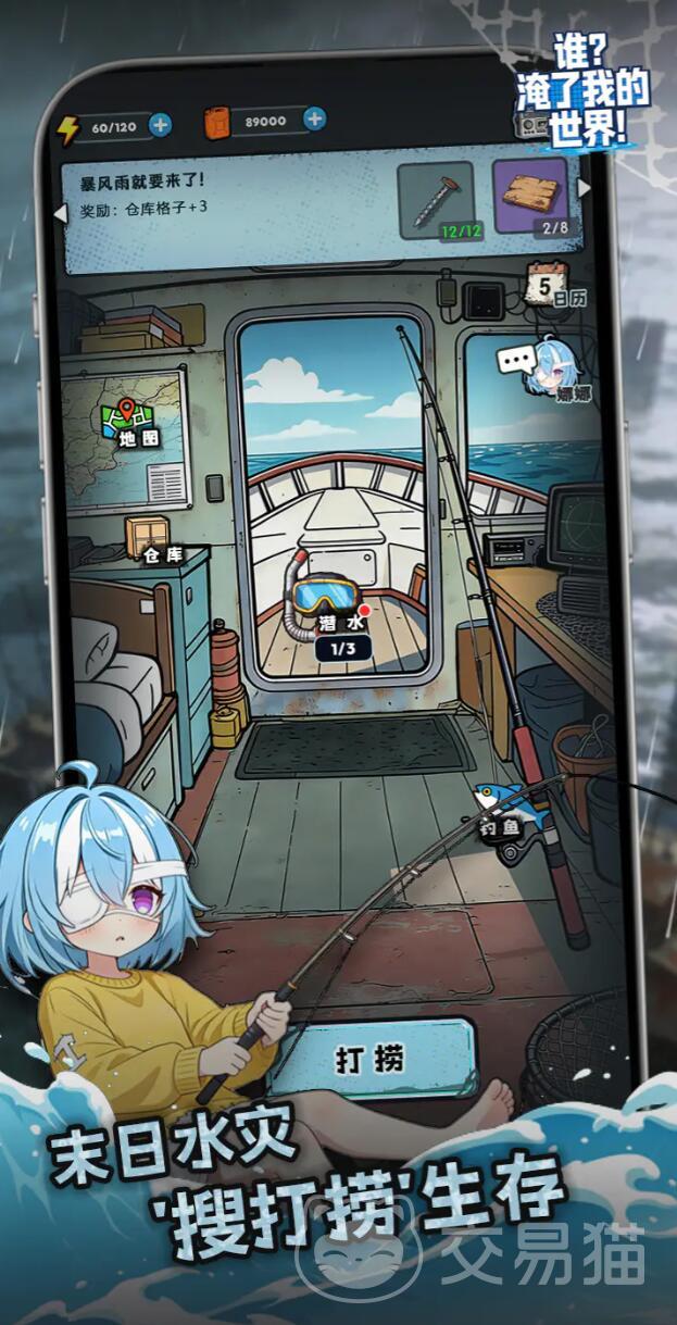游戏开局即呈现极具冲击力的沉浸式场景:玩家从昏迷中苏醒,眼前是漂浮残骸、摇曳海藻与被珊瑚覆盖的摩天楼群。资源极度匮乏,氧气、食物、淡水与可修复载具构成生存刚需。玩家需驾驶自制船只航行于广袤淹没区,在动态潮汐与随机洋流中定位沉没建筑、废弃舰艇及水下洞穴,开展打捞作业与垂钓采集——这两项基础行为不仅提供稳定物资来源,更深度关联装备强化与环境探索进度。