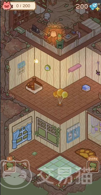 空间经营是本作另一大核心玩法。玩家需自主规划猫屋功能分区:包括休息区、游乐区、喂食区及清洁区,通过合理布局提升猫咪幸福指数。所有区域支持个性化装饰与升级,资源产出与建筑建造支持离线挂机,即使不在线也能稳定积累金币与材料,降低操作负担。